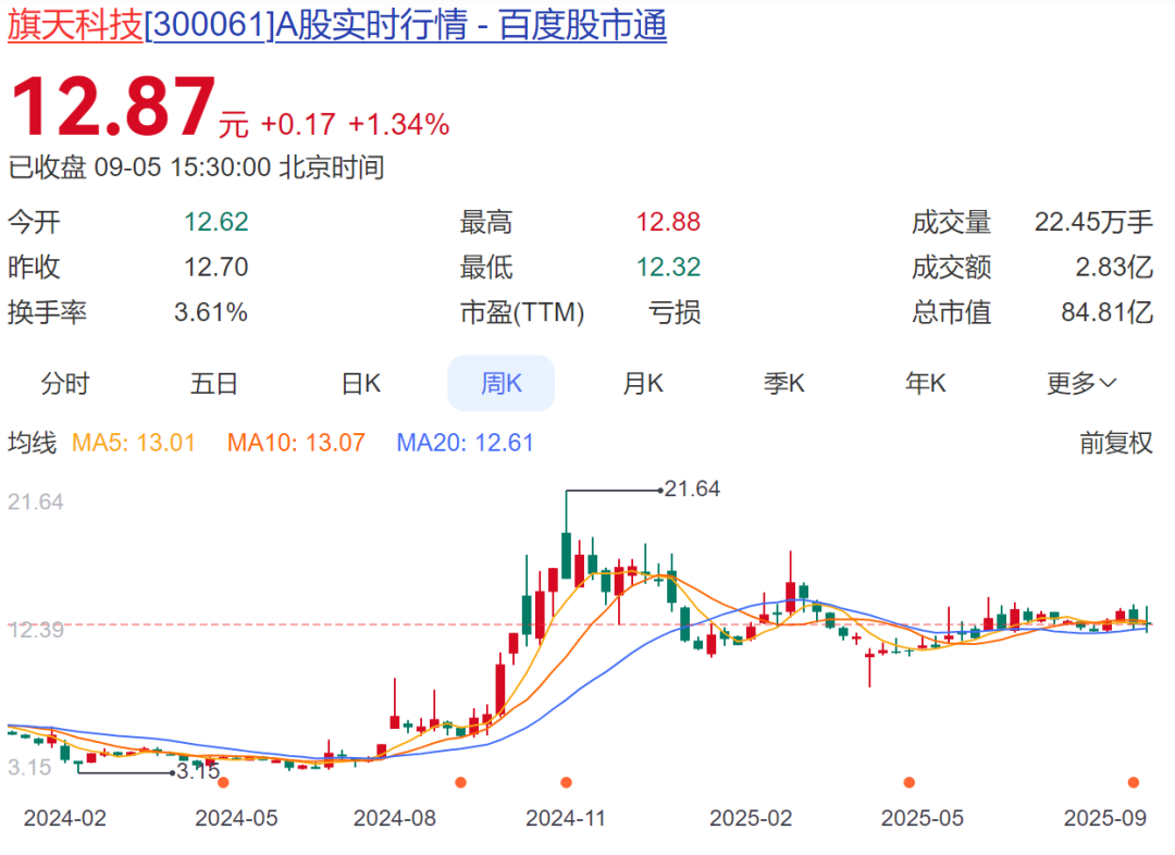 值得注意的是,旗天科技自2024年7月26日预案公告后,股价短短一周时间涨超100%,从4元/股最高暴涨至9.37元/股。